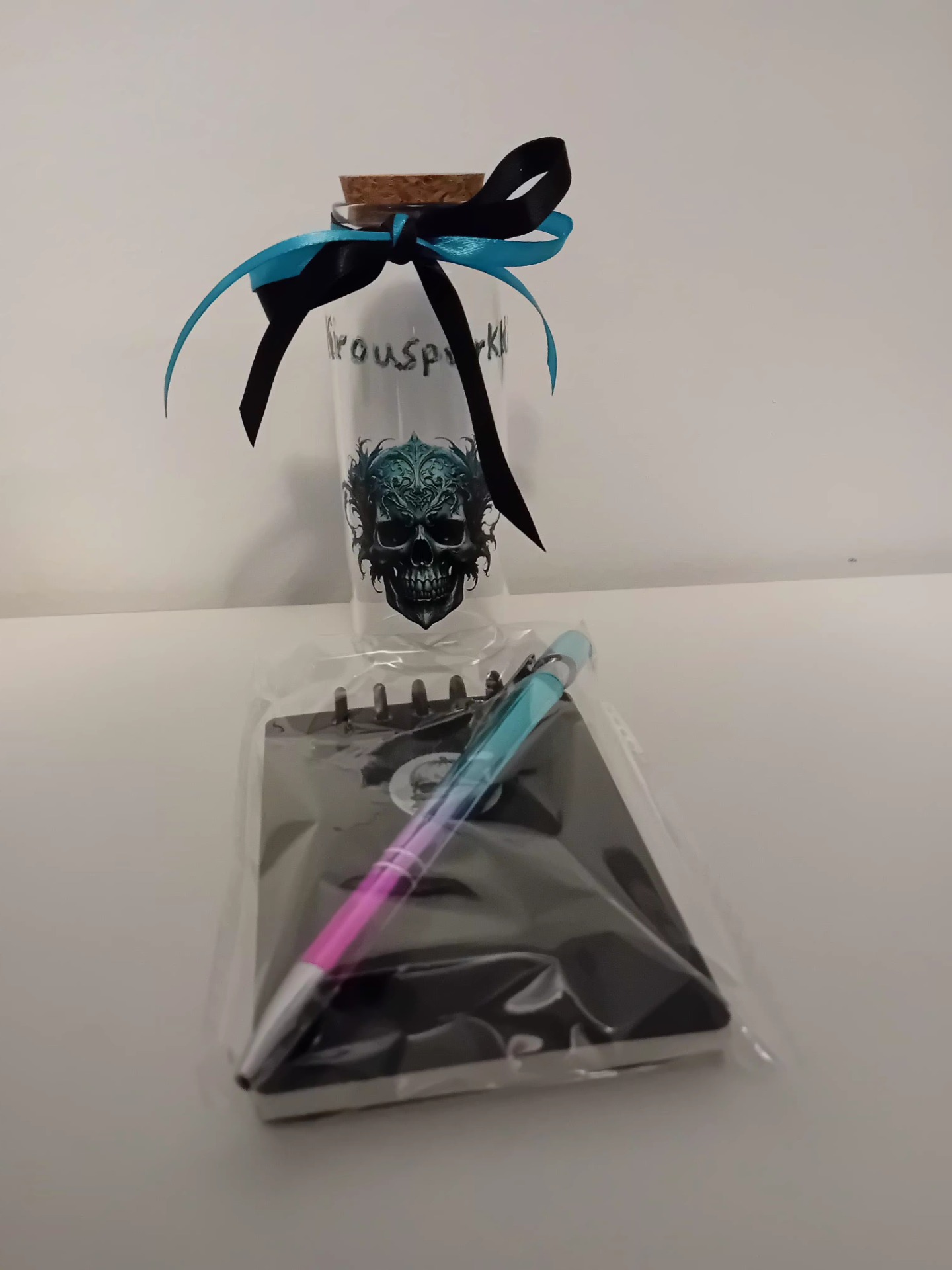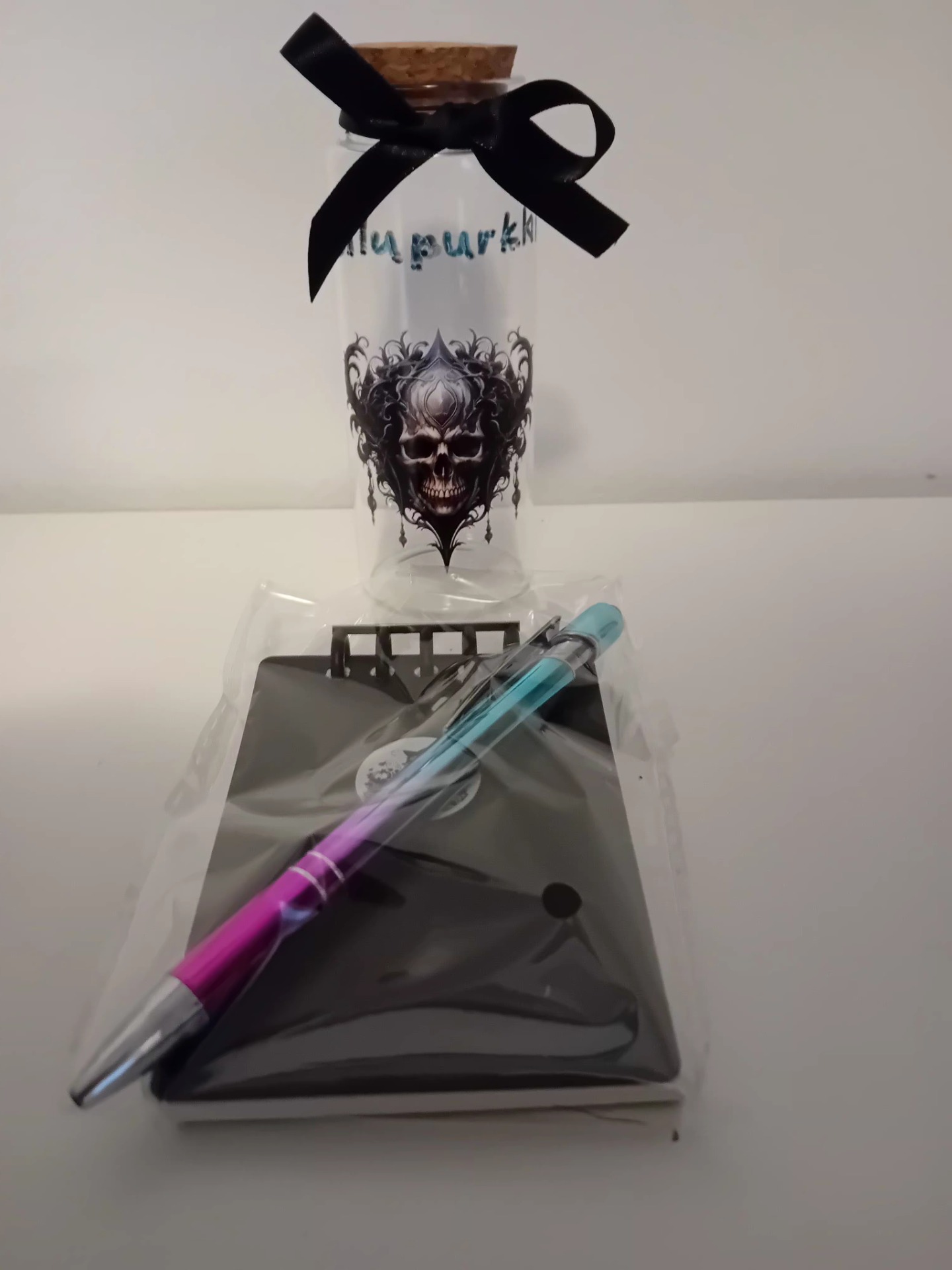 Tässä ihastuttava unikki toive tai muistopurkki. Lapselle tai keiju fanille joka on hurahtanu tämmöiseen ihanaan hörhöilyyn. Tässä paketissa on myös pieni muistilehtiö ja kynä. Jolla voit kirjoittaa muiston tai toiveen. Ja taittaa paperi purkkiin. Purkin pituus on 12cm ja leveys 4,50cm