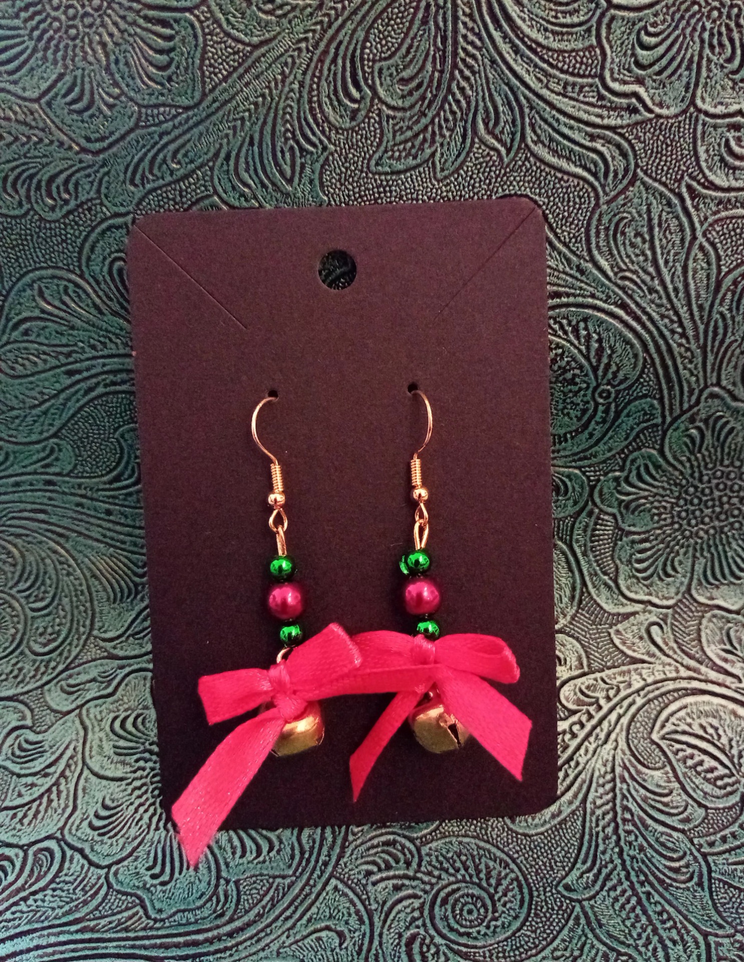 Upeat Jouluiset korvakorut. Jossa pieni rusetti. Pienet helmet ovat käytetyt jostain. Kirpparilöydöt.