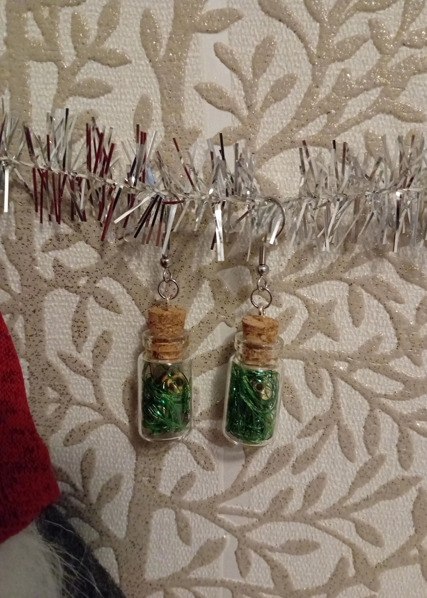 Pullon sisällä pienet jouluiset helmet ja sellaista jouluista plig plig langan pätkät.  Helmet ei kyllä kuvassa hyvin näy. mutta siä ne on.