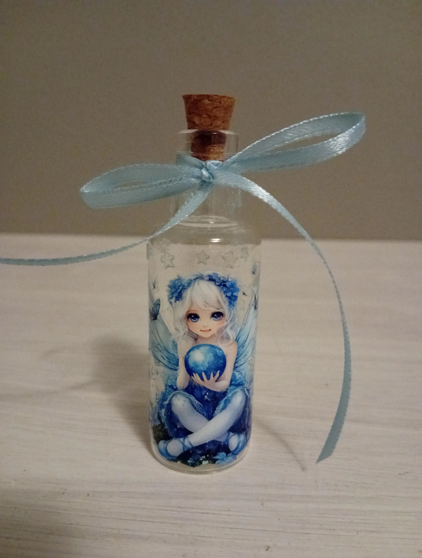 Upea pieni koriste lasipullo. Jossa ihana pieni keiju. Voit säilöä vaikka pienen muiston. tai kirjoittaa pienen kirjeen. Tai salaisuude kirjoittaa. Ja laittaa pulloon.