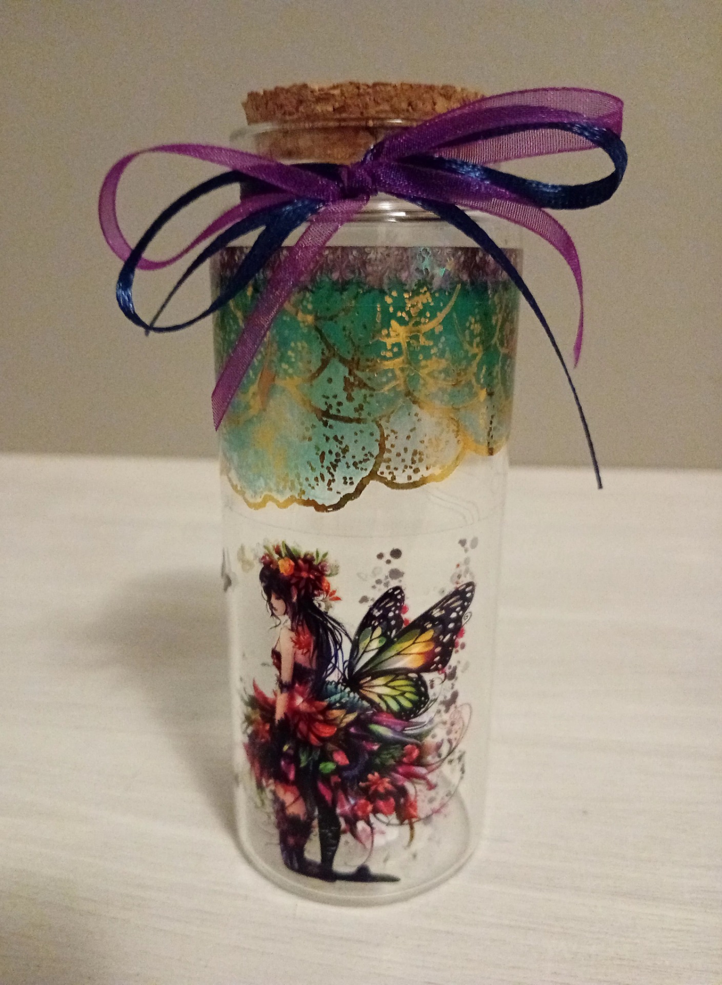 Upea keiju lasipurkki. Uniikki. itse koristeltu ja tuunattu. Voit laittaa toiveita ja muistoja. Tai säilyttä jotain ihanaa.