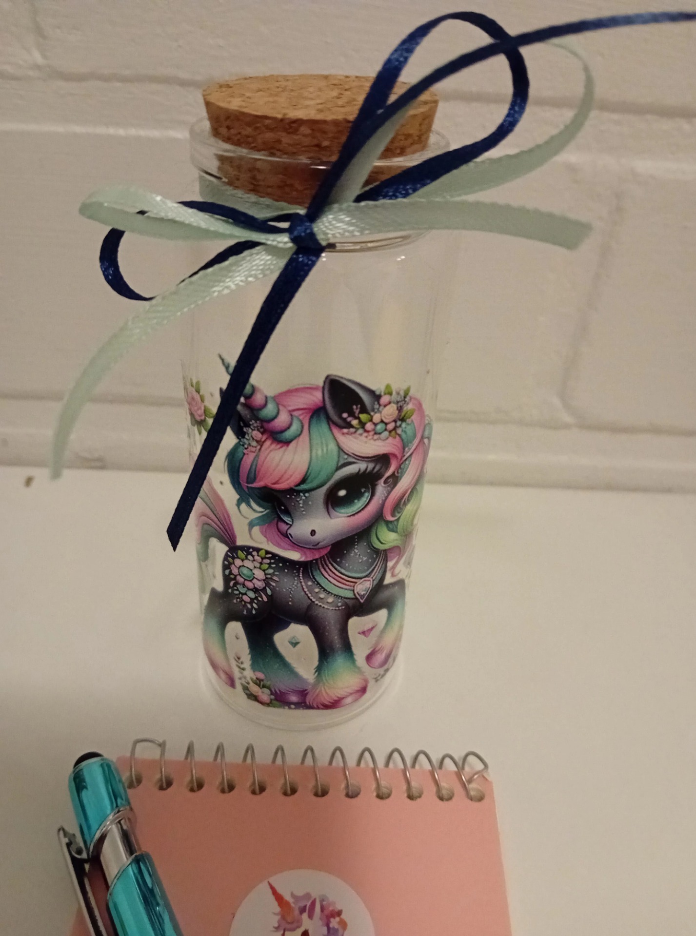 Tässä ihastuttava unikki toive tai muistopurkki. Lapselle tai yksisarvis fanille joka on hurahtanu tämmöiseen ihanaan hörhöilyyn.